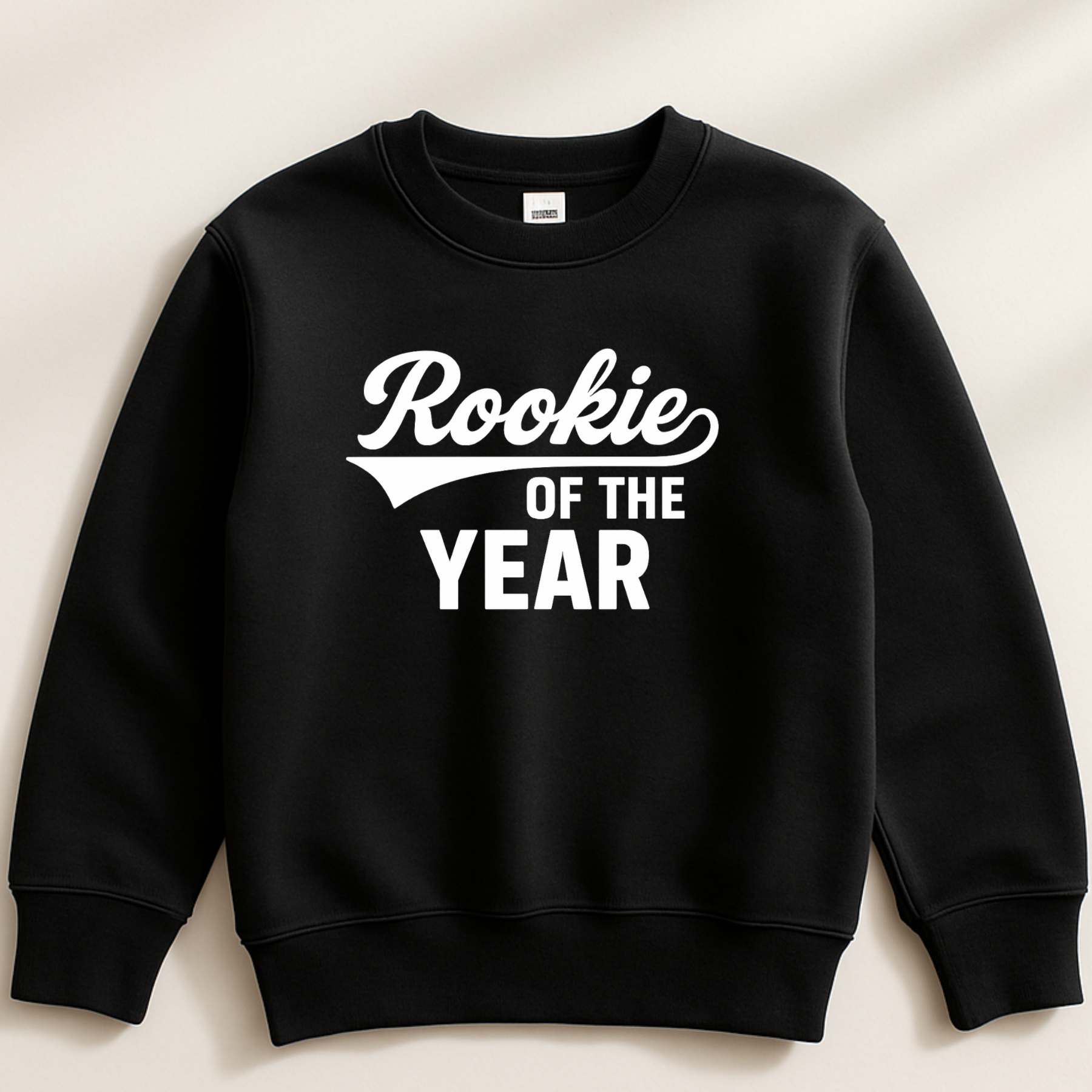 Cozy fleece crewneck with a relaxed fit and ribbed trim. Features bold “Rookie of the Year” graphic across the chest. Made from soft cotton-blend fabric for comfort and everyday wear.